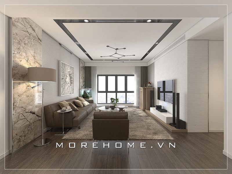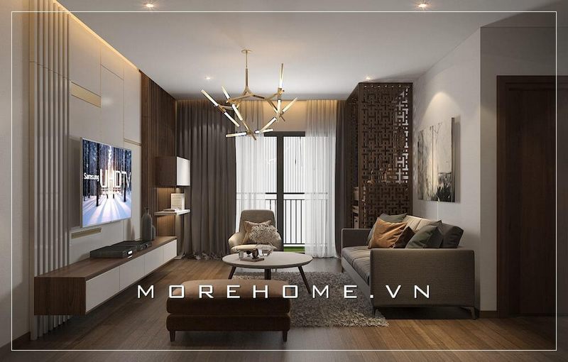 Mẫu sofa hiện đại phòng khách với tone màu nâu tạo nên cảm giác hài hòa, cho cả căn phòng